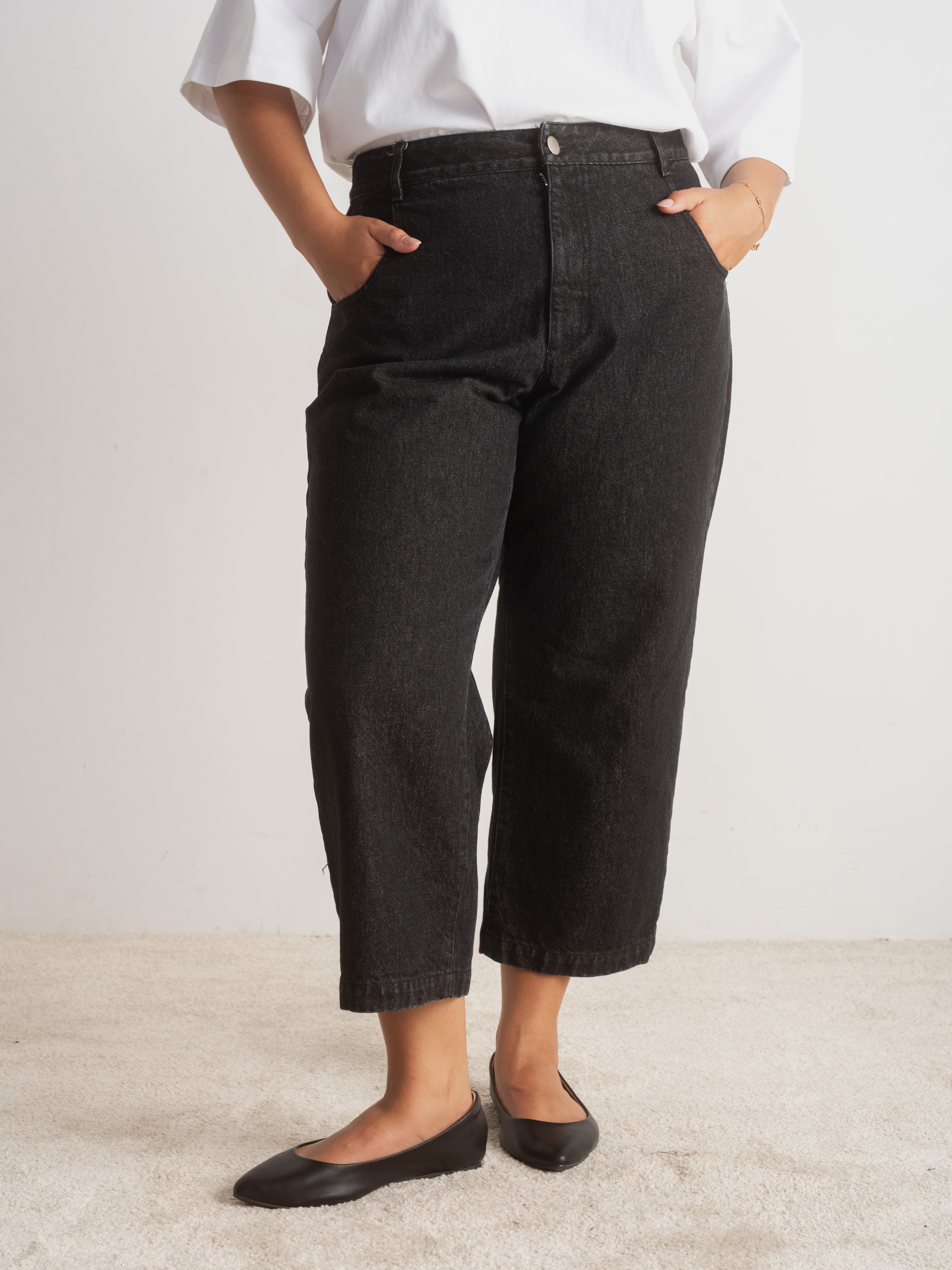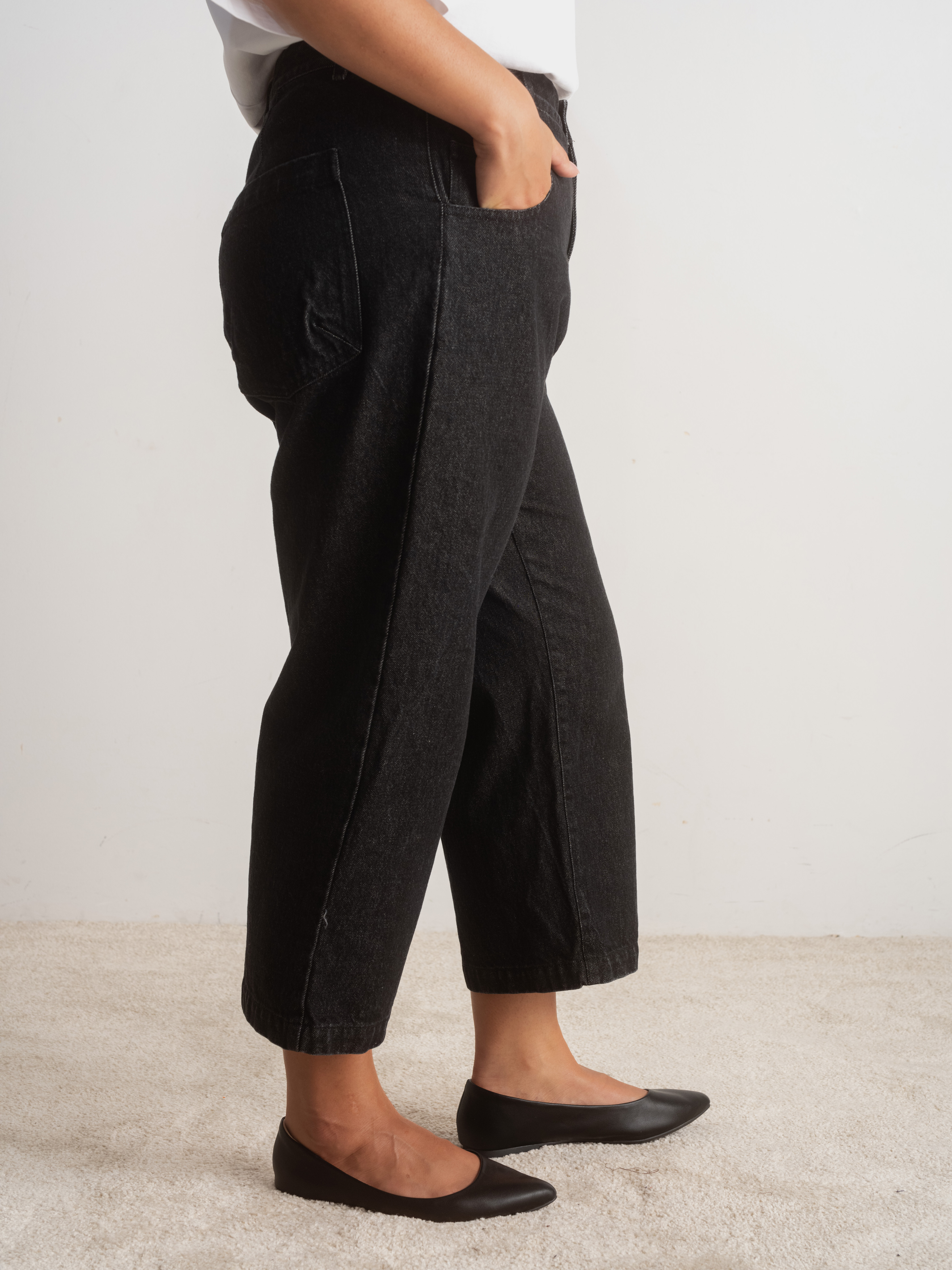 Gabby is wearing a size 16 from the JJ size range in 11oz Denim. Her measurements are: 42″/36″/45″ at 5’8″.