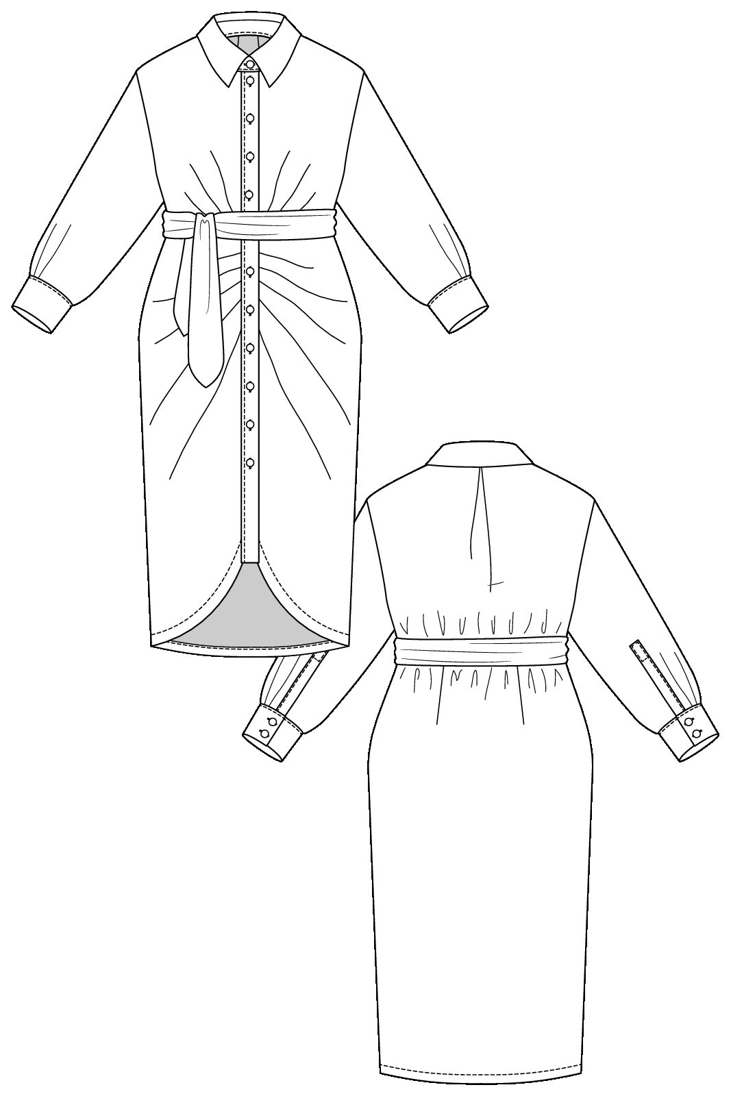 The Ilta ruched dress is a beautiful and stylish midi-length garment that is suitable for everyday wear as well as for more special occasions. The front waist and center front are elegantly pleated, and together with the belt, they create an effortlessly ruched look. The dress features dropped shoulders, a deep rounded front hem, sharp collars, and button fastening. The long sleeves are finished with slit cuffs and button closures.