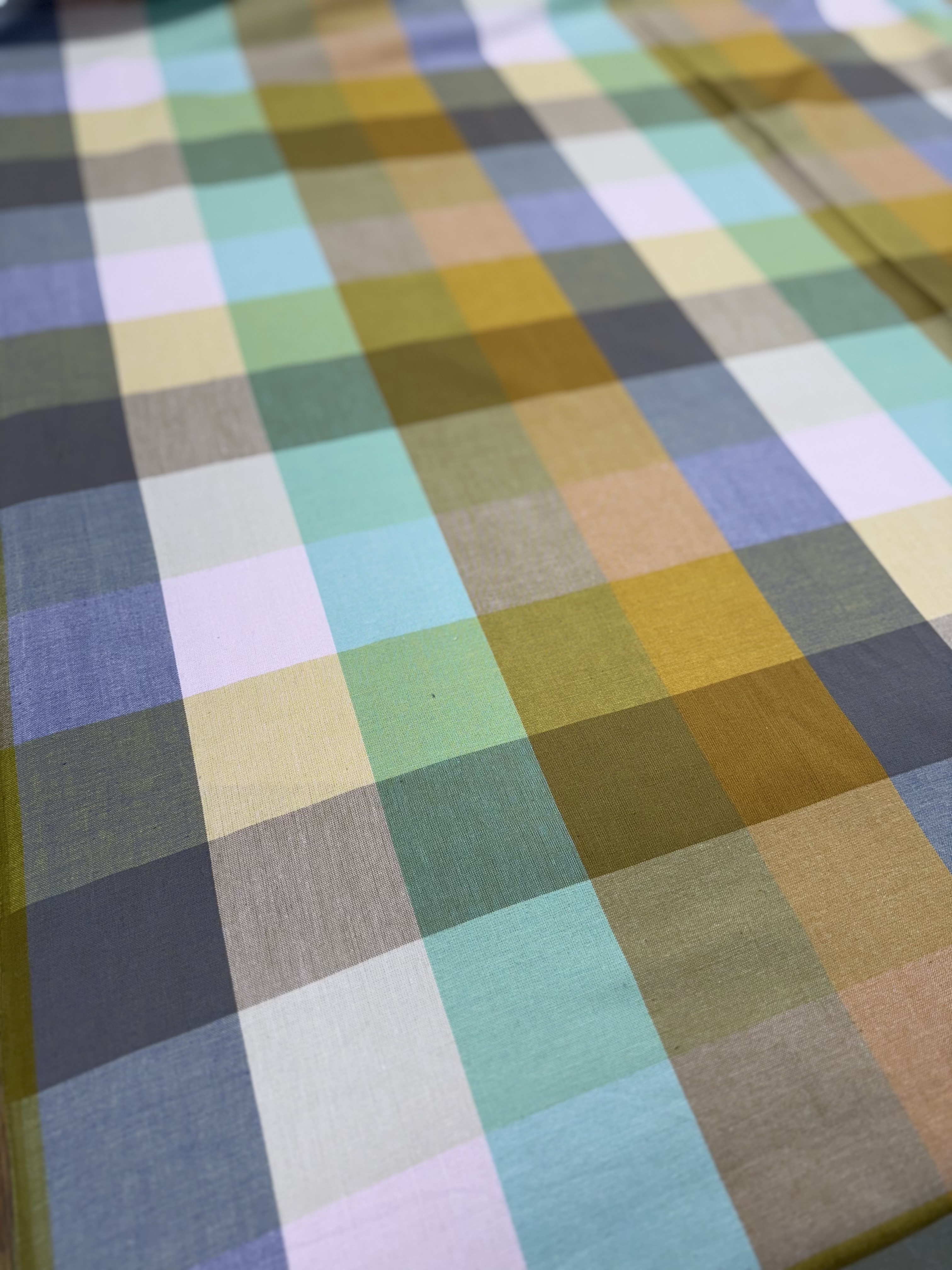 Yarn dyed cotton in a large scale check. a lightweight cotton suitable for dresses, shirts and relaxed loungewear.