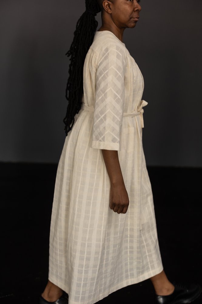 Maxine is wearing the hacked version of the Omilie pattern. She is wearing a slip under the dress.